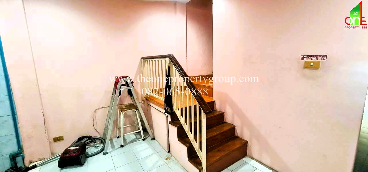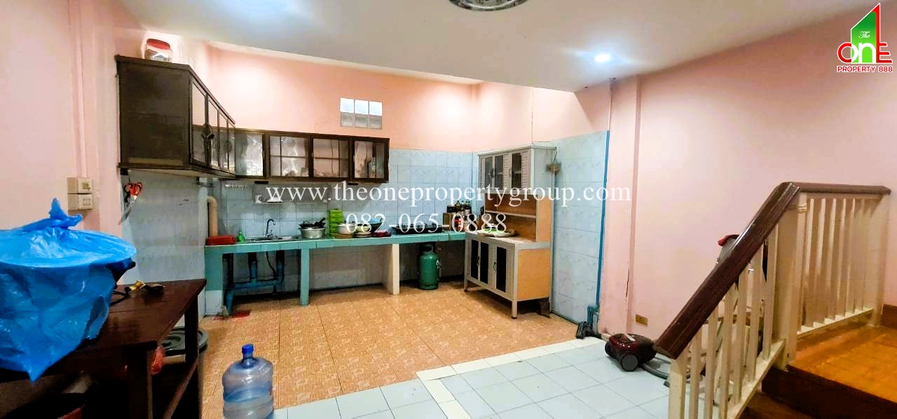 ปูพื้นกระเบื้องทุกชั้น บันไดไม้ ด้านหลังต่อเติมห้องครัว หน้าบ้านต่อเติมที่จอดรถเป็นพื้นที่ใช้สอยเพิ่ม
